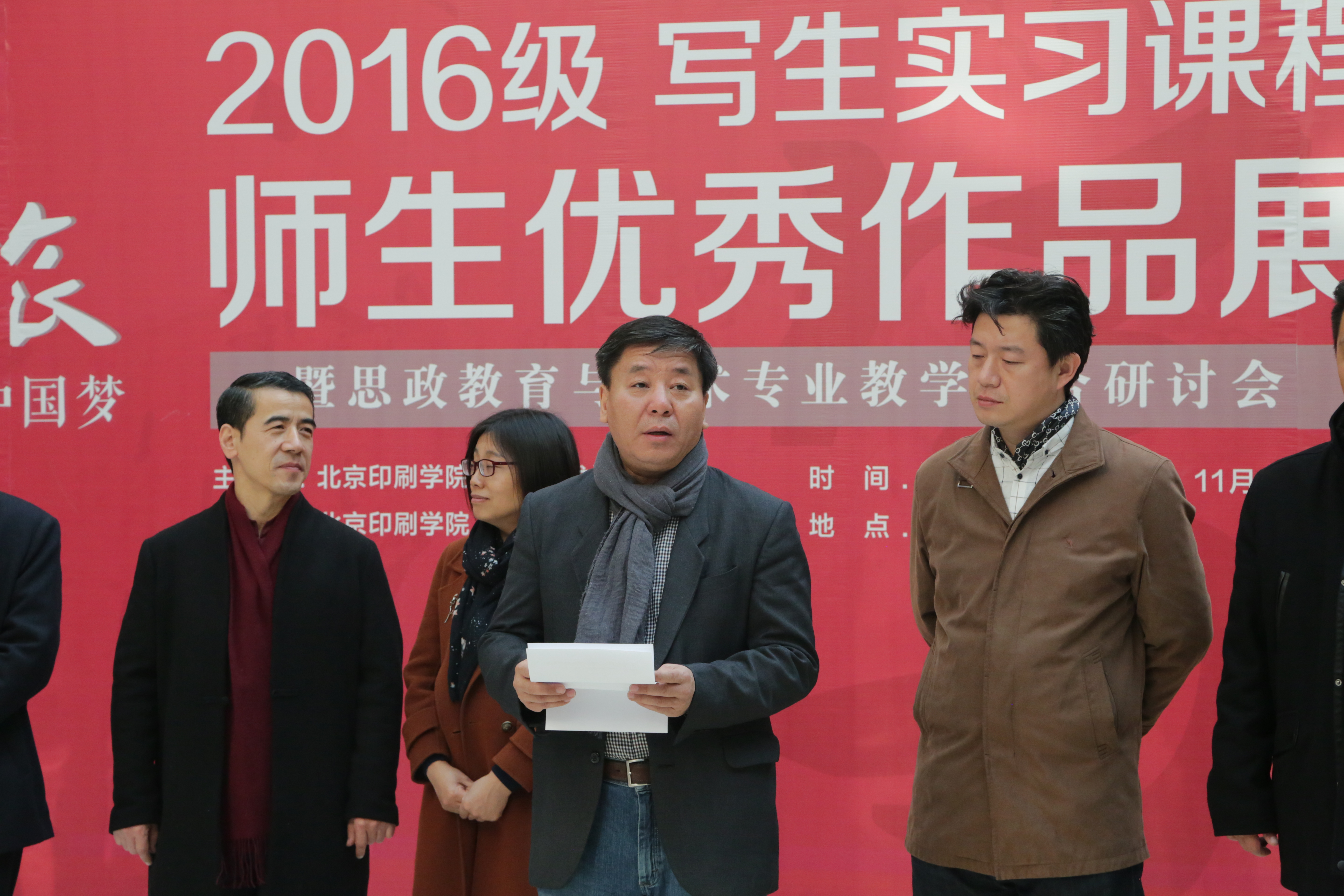张彬在随后的讲话中首先祝贺作品展隆重开幕。指出写生课是艺术教学非常重要的组成部分,写生开阔了同学们的视野,增强他们对自然的理性认识,培养思考和动手能力,进而促进创新意识、创新思维、创新方法、创新能力的提升,对提高同学们的观察力具有积极的作用。并强调了通过写生实践加强对学生的思想政治教育的重要性,此次作品展的举办,为新的一年级同学提供了学习的榜样和目标,既是一个教学过程的总结和展现,更是一种艺术教学模式的创新,并勉励同学们在实现中国梦的生动实践中放飞青春梦想.
