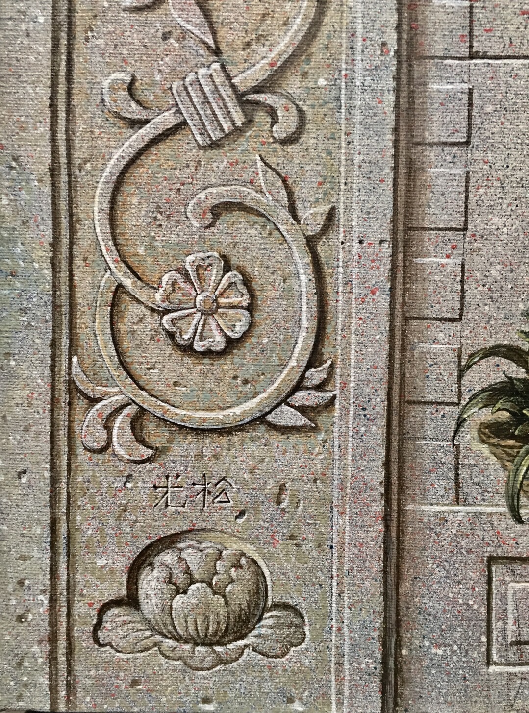 作品《杂技》中,画面拼贴了一场 “高空叠椅”的表演场景,与画面四周大理石质感的花纹浮雕墙面建立起了一幅稳定的“画中画”构图。如同舞台布景般的墙面也框定了画面主体,并分出内外关系。杂技曾在尼克松时代的中美关系起到了“杂技外交”的特殊作用。李尤松的父亲曾是沈阳杂技团的指挥,在他的童年记忆深处,舞台美术和西洋建筑编排出的视觉奇景形成了他最初的视觉启蒙,而关于杂技这段记忆又被李尤松创作为《曼哈顿的中国杂技》连环漫画。
