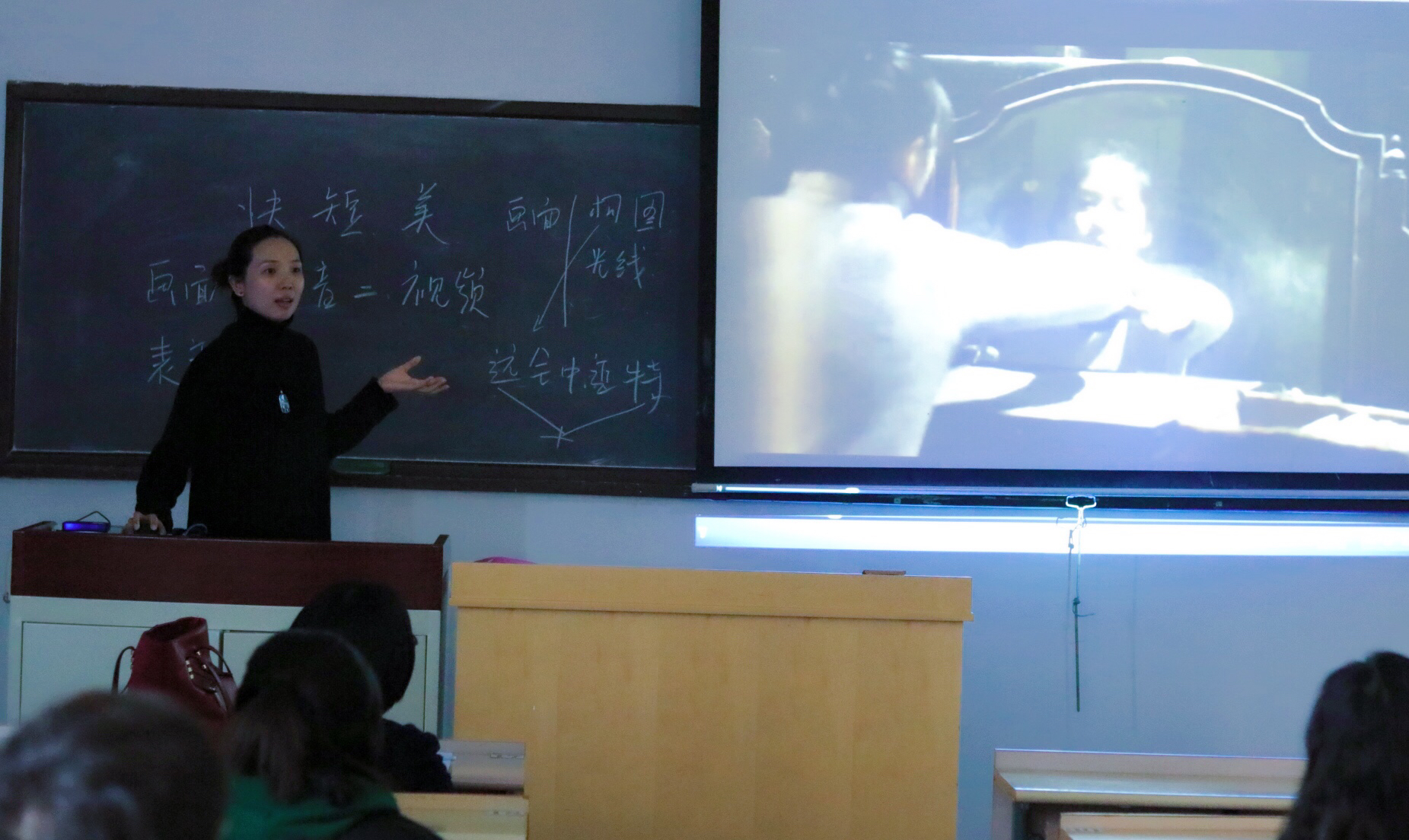 2017年11月1日下午,设计艺术学院邀请资深电视节目制作人,清华大学、北京印刷学院联合博士后工作站博士后张贞贞老师,在教C楼422教室,为2017级艺术设计专业硕士研究生做了"快短美——短视频的审美解析"的专题讲座。开讲前,张贞贞老师就同学们是否喜欢短视频,以及喜欢哪些类型做了简短的询问与了解。在讲座中,通过各类短视频实例,张老师从画面、声音、构图、逻辑关系等方面对短视频的制作与审美进行了专业性的精到解析。在讲座的问答环节,张老师就相关问题与同学们进行了互动交流。设计艺术学院龚小凡教授主持了本次讲座,2017级艺术设计专业硕士研究生40余人参加了讲座。