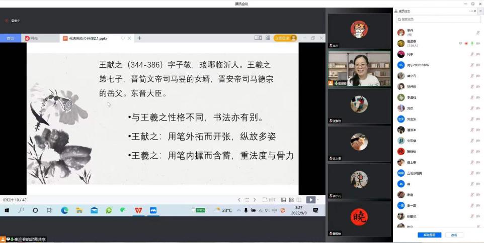课程内容为“书法艺术——行书”,以腾讯会议为基本平台,结合印苑e学堂等软件开展混合式教学,在思政元素引导下提高专业课堂的感染力和实效性。课程融合思政元素内容融入课程讲解中,在教授书法艺术的同时实现思想育人,并为学生在后续专业课程中打好理论与实践基础。
