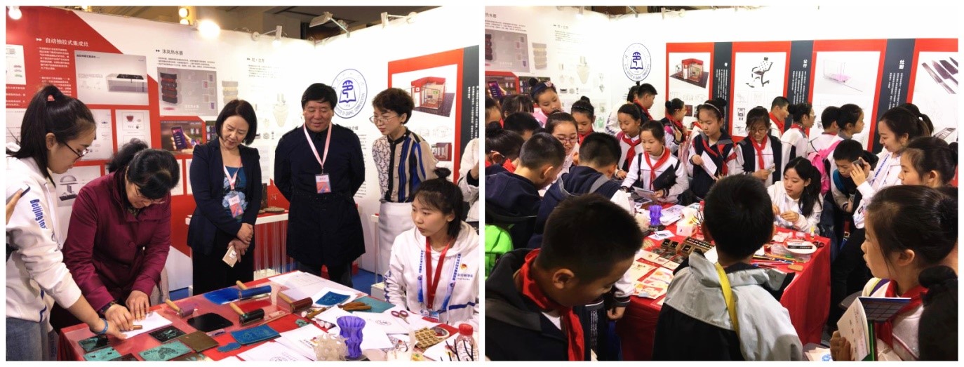 教育部党组成员、部长助理刘大为,上海市副市长翁铁慧,教育部体育卫生和艺术教育司司长王登峰,中共上海市教育卫生工作委员会书记虞丽娟等领导于开幕仪式结束后到北印展位参观,听取了师生以“艺术与科技”结合为导向,在创新创业人才培养中积极发挥第二课堂学生社团作用的情况介绍。北京市教委体卫艺处领导、北京学生活动管理中心相关负责同志走访工作坊,体验感受学校文化特色,对参展作品和互动环节予以肯定。