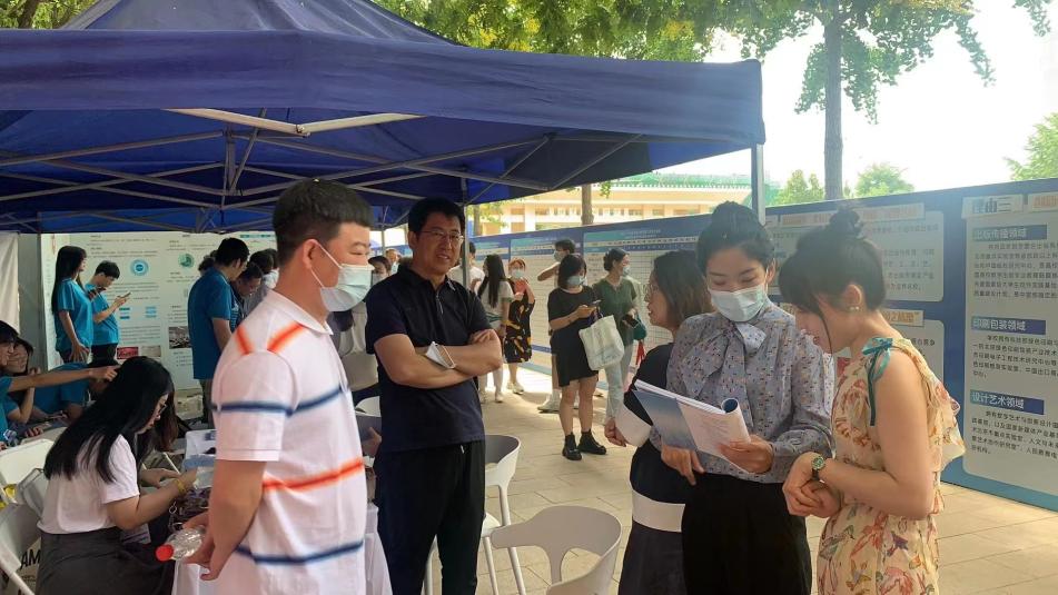 活动现场位于校内,展位上精心布置了设计艺术学院的介绍展示区,包含各个专业的展示区。家长和考生们可以在这里详细了解设计艺术学院的发展历程、教学理念和培养方案。同时,视觉传达设计、绘画、艺术与科技、产品设计专业的代表也在现场展示了自己的作品和成果,向家长和考生们展示专业技能和创作能力。