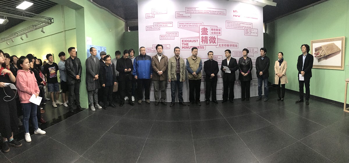 田忠利总结指出,中央美院和北印之间颇有渊源,从历史来看我们是一家人,本次活动策划时间又恰逢中央美术学院庆祝建校100周年和北京印刷学院迎接办学60周年纪念,是两校交流人才培养与教学改革的一次契机。本次活动体现了教学团队继承“致广大而尽精微”的传统,创新教学理念的精神。“致广大而尽精微”出自中庸,它代表了深厚的儒家传统文化。从传道、授业、解惑的教育层面来说,儒家最高境界讲“仁者爱人”,仁既体现于爱人,也体现于爱物。通过物的表现,可以体会作者在“物”中寻找、选择和挖掘的背后故事、人文精神、价值以及“民胞物与”的哲学理念。另外从基础教学内容拓展方面,精微素描教学从画室中走出来,从既定道具中走出来,面向生活,通过精微具象的符号,把大自然万物的意象精神表达得淋漓尽致,实现了精神的焕发和视觉的震撼,是一种纪念碑式的怀旧,也是现实的一种重新、再现,从理念、题材选择和技法上,都是高等教育中素描教育的拓展。田忠利感谢苏海江团队进行的教学改革,感谢学校相关职能部门的支持、相关学院工作人员的付出以及学生的参,并预祝展览圆满成功。