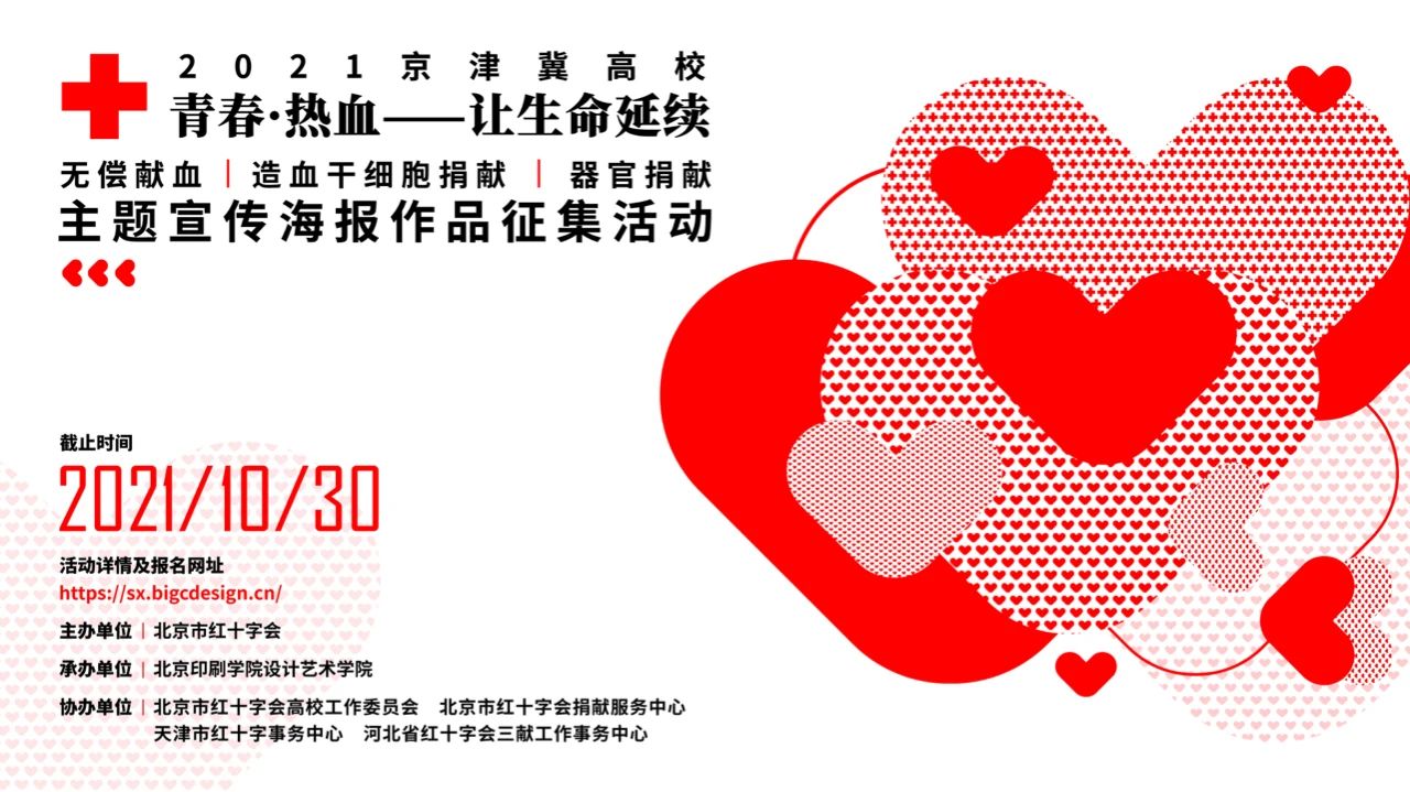 为进一步培育和践行社会主义核心价值观,弘扬“人道、博爱、奉献”的红十字精神,传播正能量,引领新风尚,展现当代大学生社会责任和社会担当的精神风貌,北京市红十字会决定举办2021京津冀高校“无偿献血、造血干细胞捐献、器官捐献”主题宣传海报作品征集活动,广泛宣传普及无偿献血、造血干细胞捐献、器官捐献知识,号召更多的志愿者加入“三献”行列,为病患者送去生命的希望。现将相关事宜通知如下: