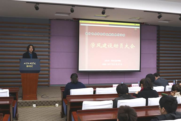 3月27日下午2点,设计艺术学院在教A楼报告厅召开了学风建设系列活动动员大会,大会分为两部分。首先设计艺术学院领导班子向参会同学们做了如何加强学习的动员,随后学院特邀深圳画院美术馆馆长孔森做学术讲座。设计艺术学院班子成员、班主任代表、学生骨干代表等150余人参加大会。