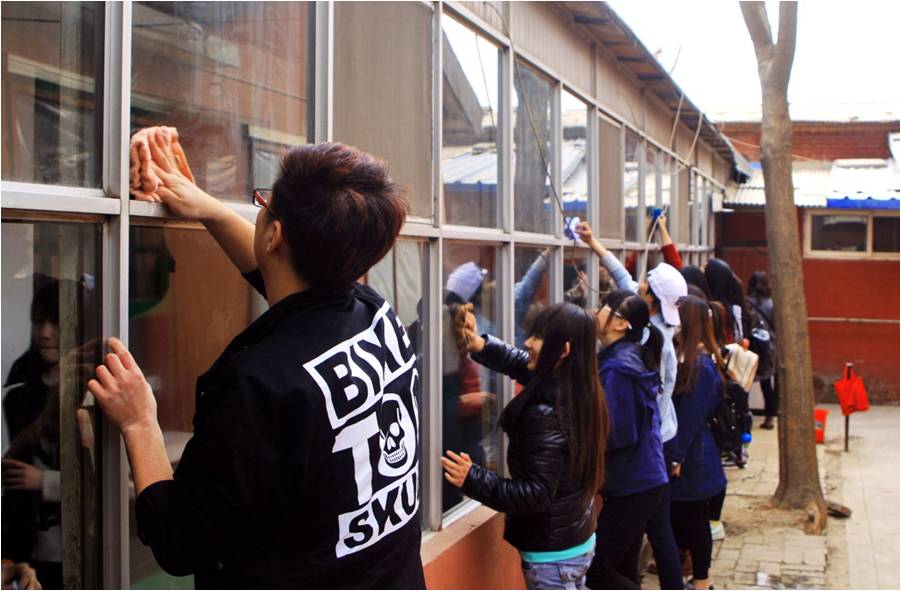 同学们来到敬老院,简单参观了老人们的休息室与活动室。大家用自带工具给对敬老院的玻璃走廊等地进行清洁,各司其职,认真工作,充分发挥了大学生志愿服务精神,尽力为老人们提供最周到、最贴心的服务。这次活动为大学生提供了接触基层,了解社会,了解老年人生理心理健康状态的机会。