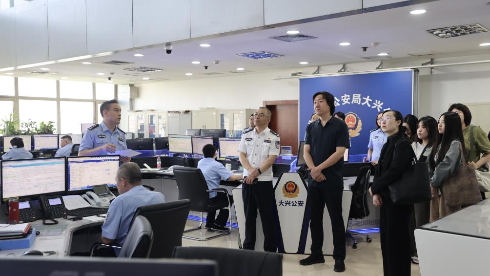 5月11日,为推进全国文化中心建设,响应大兴区“一轴两带三区”文化建设总体发展思路框架,进一步加强校地共建,助力大兴公安文化建设,北京印刷学院设计艺术学院张晓东院长、王蕊副书记等一行赴大兴公安分局调研交流,大兴公安分局姚劲松副局长带领北印一行参观了大兴公安分局相关文化建设设施、景观、雕塑等,并进入大兴分局调度室进行观摩,全面了解分局日常的工作环节和现代数字化的智慧公安模式运行情况。