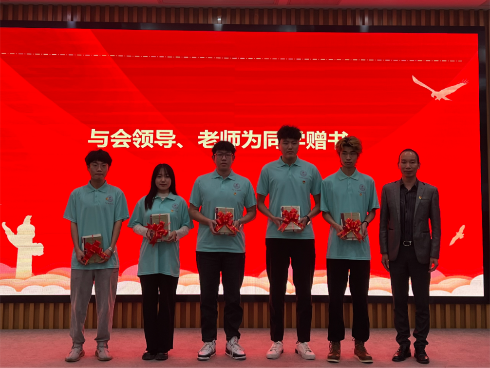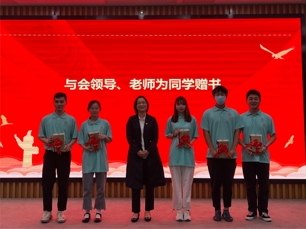学校党委宣传部常务副部长王新营、学校党建工作处处长赵欣分为同学们赠书。