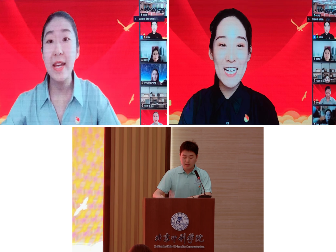 设计艺术学院学生党员代表王灿、张雨晴从支部建设、个人成长经历进行了发言分享。展示出党员作为党的肌体的细胞如何用自己的努力奋进、无私奉献来诠释党支部的生命力、凝聚力和战斗力;也展示出青年党员勇担时代使命,身体力行地践行着请党放心,强国有我的青春誓言。学生党务中心宋双意详细介绍“青春心向党”荐书读书设计活动方案。