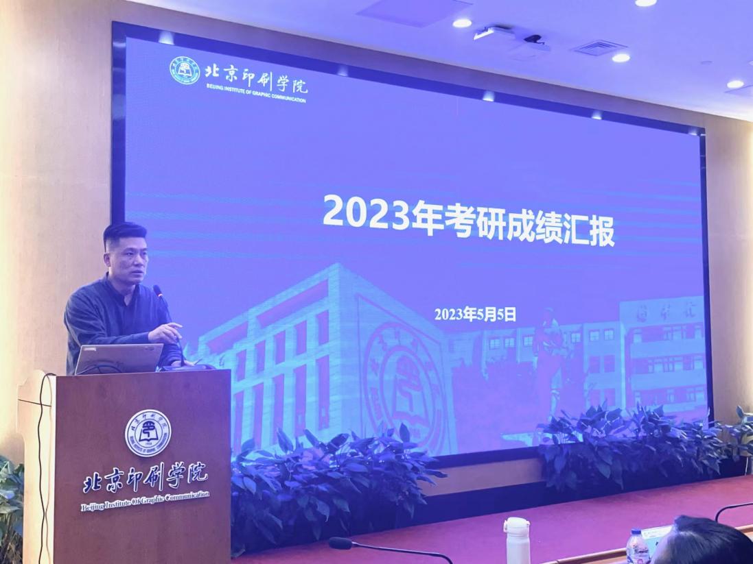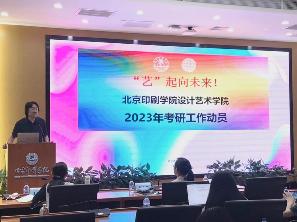 设计艺术学院院长张晓东进行2024届毕业生考研工作动员,他借用了习近平总书记的话“青春孕育无限希望,青年创造美好明天。”来介绍北京印刷学院研究生在北京冬奥会中的多项贡献,强调了“艺术+科技”。之后从个人成就、社会发展、国家战略三个方面来让学生认识考研的重要性,并且介绍优秀研究生来激励同学们,最后用“正青春一起拼”来送给所有即将踏上考研征程的同学们。