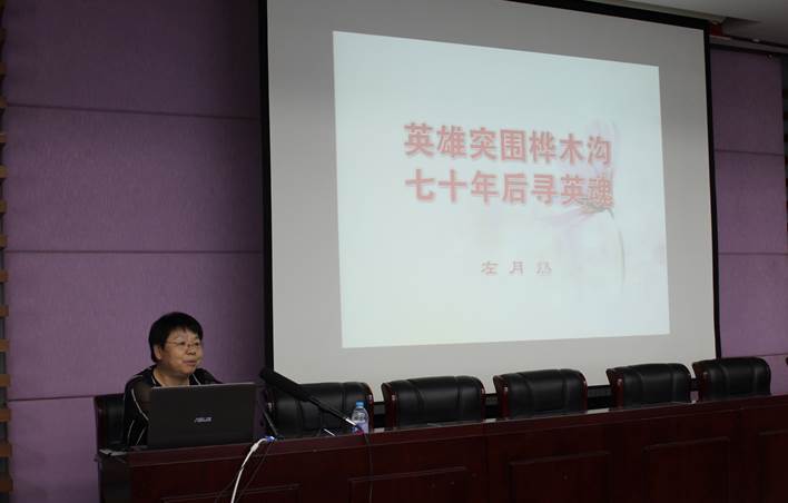 冀中抗战讲师团成员、开国将军高存信侄女高劲松教授以《国家兴亡 匹夫有责》为题目,讲述了我军炮兵建设的先驱高存信将军投身革命的故事。冀中抗战研究会副会长、宣讲团团长左月燃教授以《英雄突围桦木沟 七十年后寻英魂》为题目,讲述了为“桦木沟惨案”中两位牺牲女战士寻找亲人的精彩故事。两为教授的宣讲赢得了在场师生的阵阵掌声。