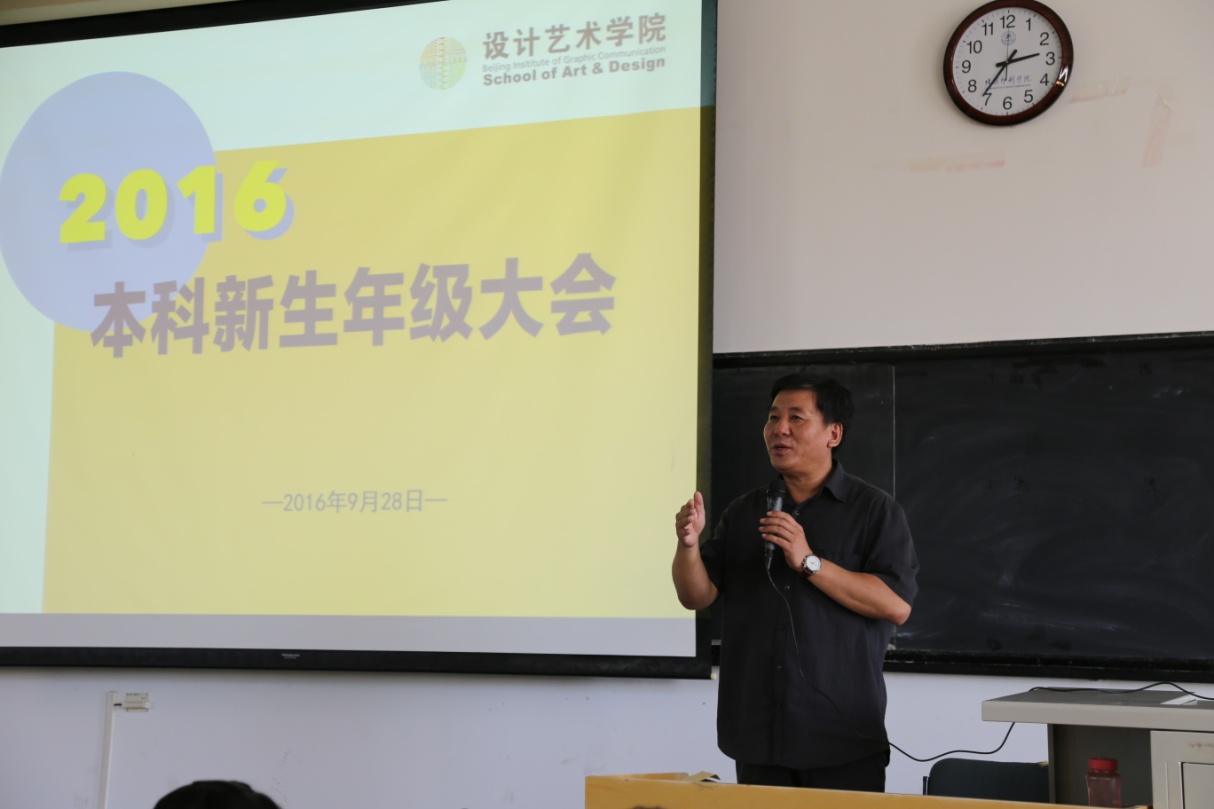 执行院长张彬对新生表示了热烈的欢迎,并围绕"求真"、"朴实"、"热爱"三个关键词介绍了学院的发展建设情况,勉励同学们要将求真的学习态度、朴实的做人品质、对专业执着的热爱贯穿于大学学习生活中,要"从你走进校门的那一刻起,就把自己当成一个设计师。"