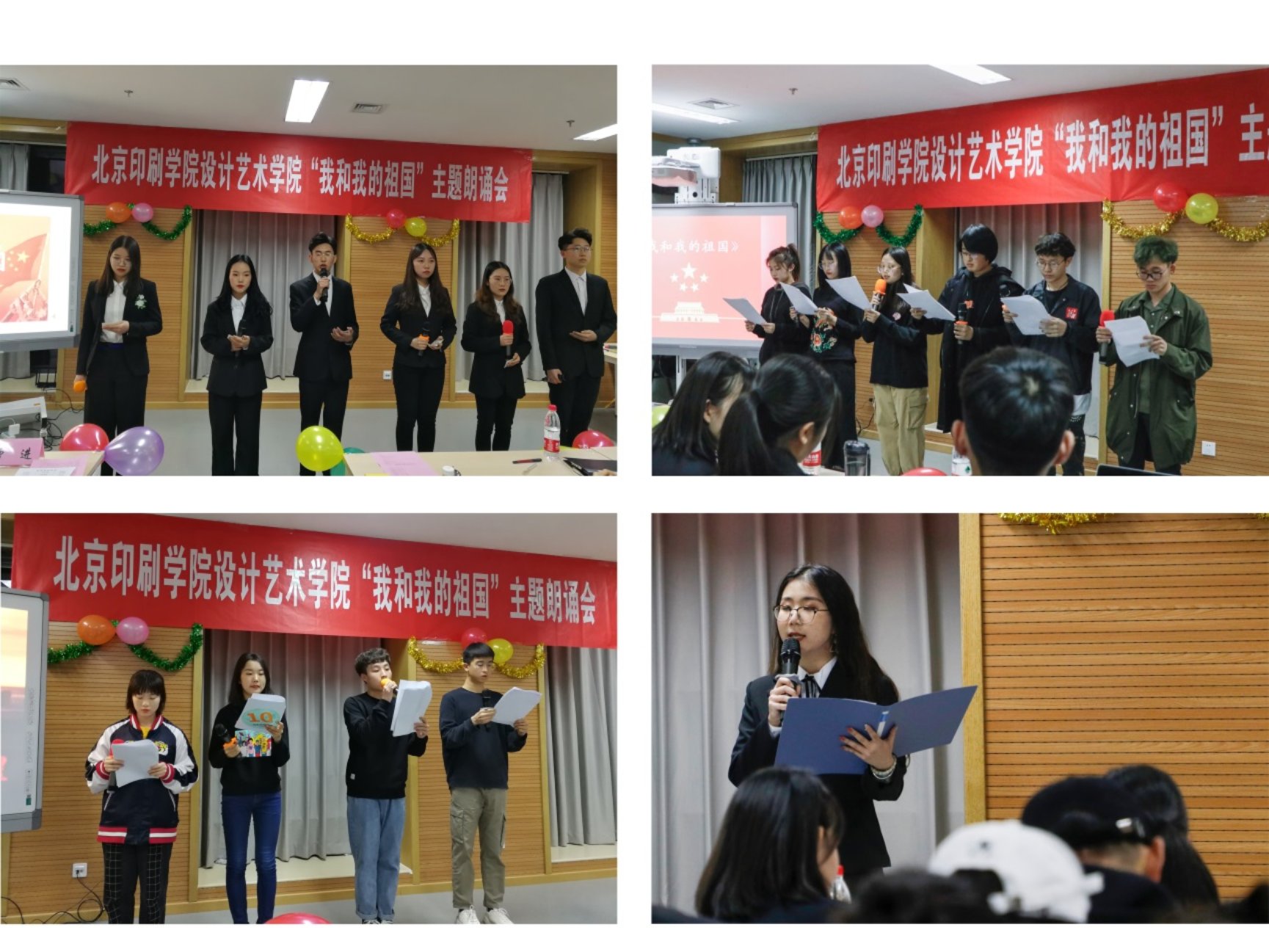 为了深入学习贯彻习近平新时代中国特色社会主义思想,纪念新中国成立70周年,在第25个“世界读书日”即将到来之际,由设计艺术学院分团委,设计艺术学院关工委举办的 “我和我的祖国”主题朗诵会在新绿色大厦七楼成功举办。设计艺术学院分团委书记曹进,分团委副书记李妍凝,学生会主席夏庆港,团学组织代表,基层团支部代表,参赛选手以及各班大众评审及观众100余人参加本次朗诵会。