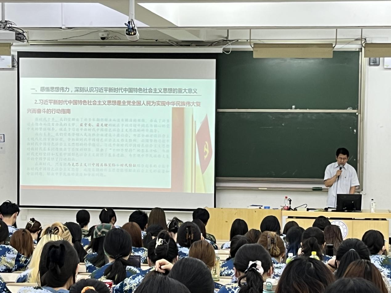 为深入学习党的二十大精神,强化思想引领,坚定使命担当,2023年6月30日在N1A106,设计艺术学院党委书记史民峰为同学们讲授“学思践悟二十大,笃志扬帆启新程”专题党课。设计艺术学院2023级全体同学、本科学生党支部支委助理参加学习。学工组负责学生党建工作辅导员曾琤、2023级年级辅导员刘余溢参加了会议,会议由刘余溢主持。