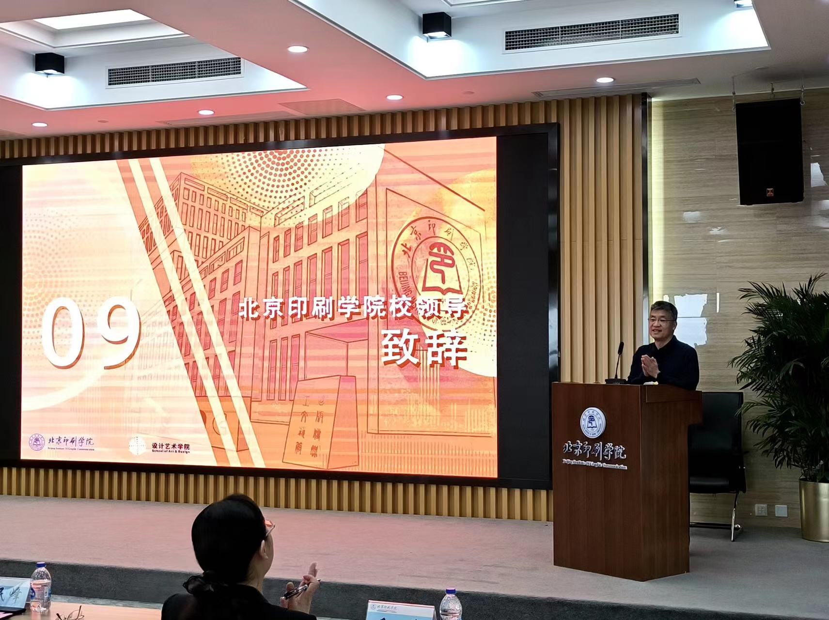 北京印刷学院党委副书记白莽为成立大会致辞