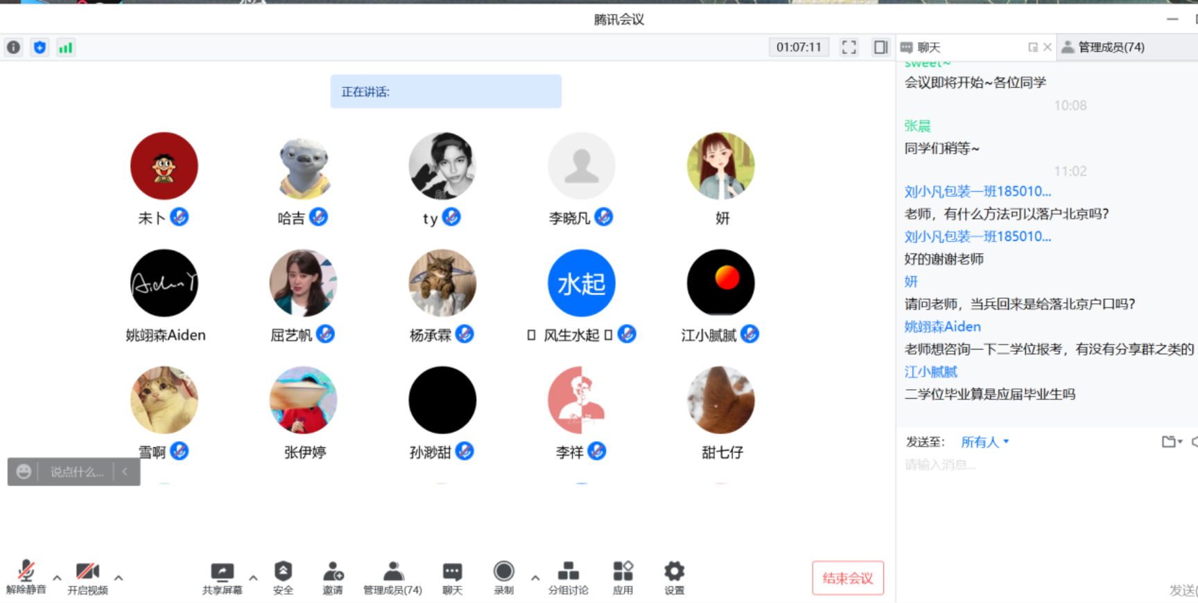 宣讲会结束后,同学们与老师就自己关注的问题进行了线上互动交流。通过此次宣讲会的召开,明确了毕业生在就业前需要做好的准备工作,为毕业生就业提供了有力的支持。