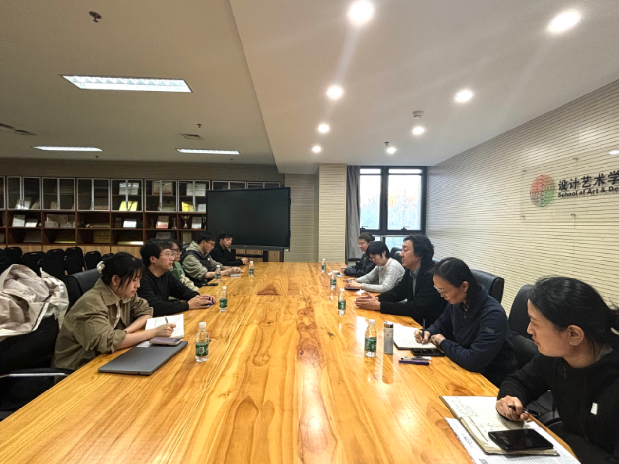 赵昆介绍了北京日报报业集团和京报移动传媒集团的业务构成、人才需求以及重大活动项目开展情况。张晓东介绍了学院学科与专业特色、科研成果、人才培养、师生参与重大活动设计项目相关情况,聚焦北京日报正在进行的相关IP设计工作给出了相应的意见和建议。随后,王馨悦提出学院近年已有多位研究生在北京日报就业,学院多个专业符合北京日报用人需求,期待北京日报为学院学生提供专业实践以及实习机会。双方围绕校园招聘、项目合作等方面展开了深入的探讨。