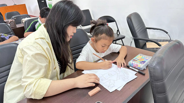 支部党员首先为孩子们进行了红色主题的宣讲。在绘画环节中,党员们为小朋友们讲解图画内容,指导孩子们用铅笔和涂色笔勾勒出他们心中的画面,稚嫩的画作充满了对祖国的美好祝愿。小朋友们拿着画笔涂着或深或浅的颜色,每个花朵、树叶,都一笔笔地仔细描绘,五彩斑斓的画面,展现出孩子们纯真的内心世界和丰富的想象力。