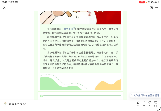 为筑牢研究生宿舍安全防线,倡导健康文明的生活方式,营造安全、整洁、无烟的学习生活环境,设计艺术学院面向全体研究生组织开展了以“宿舍安全”与“控烟安全教育”为主题的专项教育活动,得到了同学们的广泛认可与积极响应。