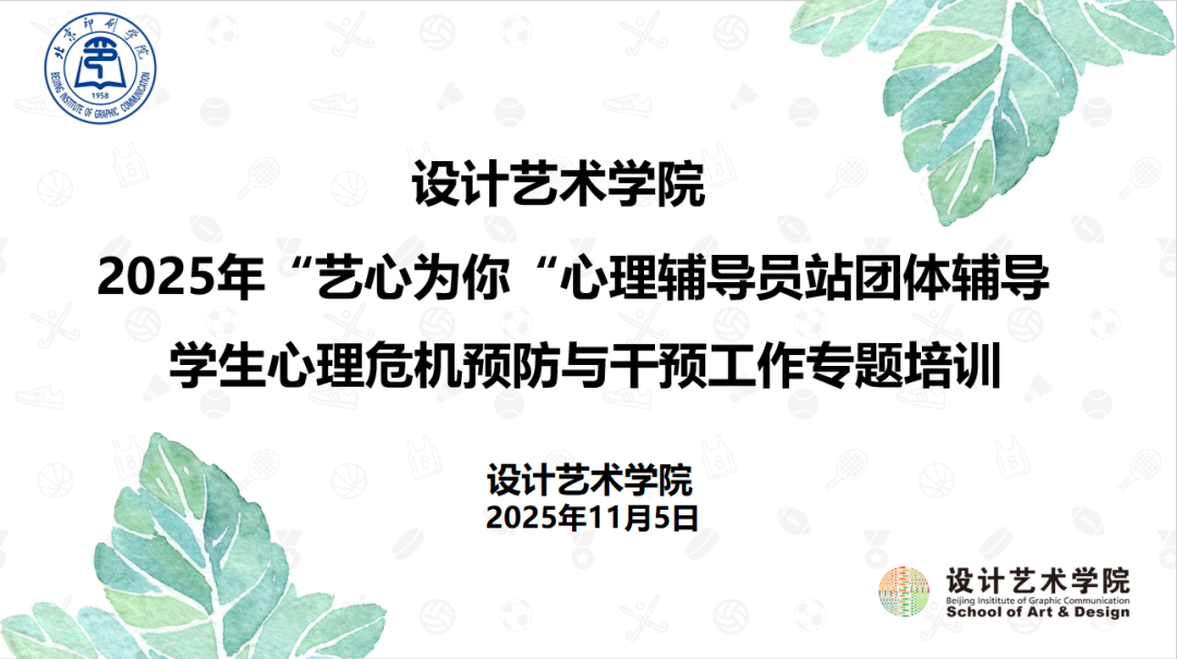 为深入贯彻落实《北京印刷学院学生心理危机预防与干预工作预案》,进一步加强学生心理健康教育工作,提升班主任及辅导员队伍的专业能力,设计艺术学院“艺心为你”心理辅导站于11月5日上午9:00在S1A-312会议室举办了学校文件解读与学习培训。本次培训由设计艺术学院党委副书记宋守超主持,辅导站负责人董琪琪主讲,全体辅导员、班主任通过线上线下相结合的方式全员参与。