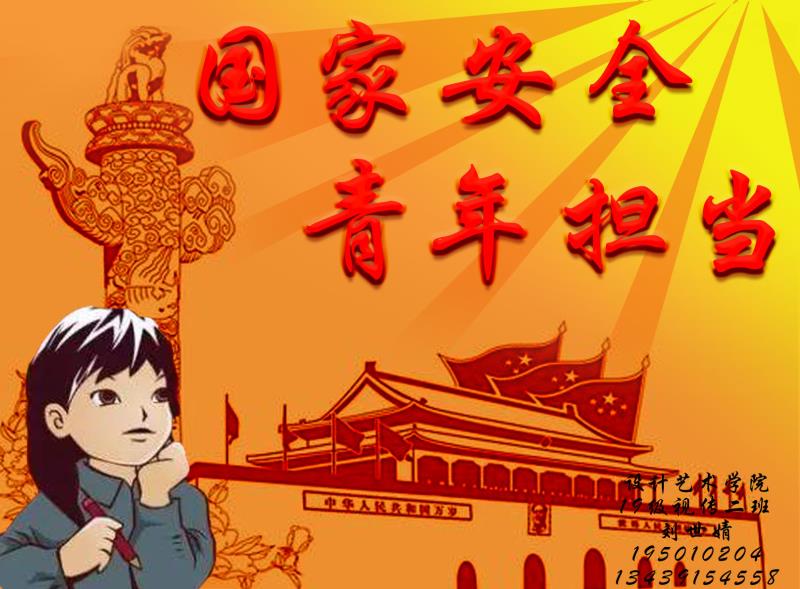 树立国家安全意识,做新时代有为青年。 19视传6班 魏楚楚