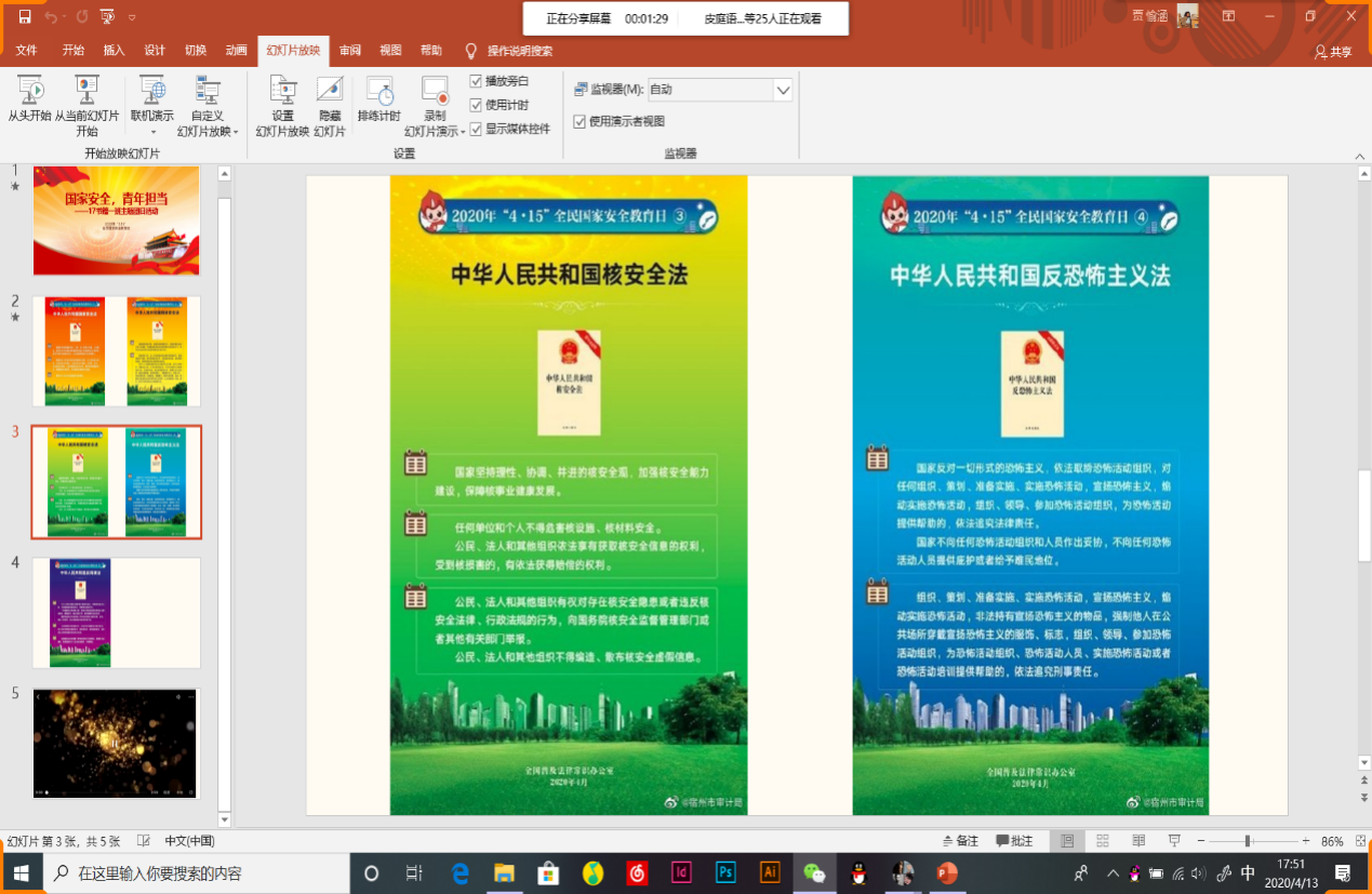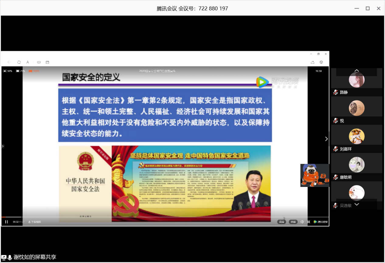 "今天是第五个全民国家安全教育日,在这个特殊的时期,我们通过线上班会对国家安全知识进行了全面学习。