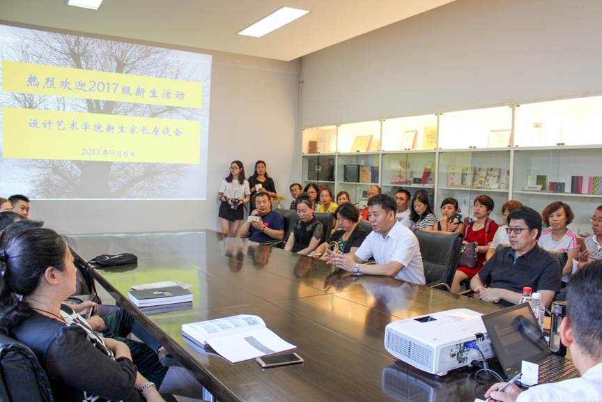下午2点30分,设计艺术学院于教E楼301会议室召开17级迎新系列活动之新生家长座谈会。设计艺术学院执行院长张彬、党委副书记(主持工作)史民峰、副院长张晓东、党委副书记史河以及班主任代表赵欣以及百余位新生家长参加了本次会议。学院领导班子向新生家长详细介绍了进行了学院的发展历史、教学资源的现状、专业设置情况、中美联合培养国际班、班主任工作等方面的情况。随后党委副书记史河与副院长张晓东对各位家长的提问进行了认真而耐心的回答。座谈会持续两个小时,新生家长们纷纷对此次座谈会的召开及学院领导的细致讲解表示一致好评。