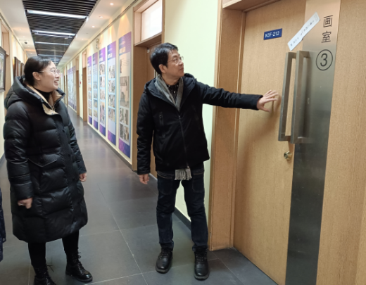 1月18日,设计艺术学院党委书记史民峰、副书记王蕊携学工组辅导员、教室管理教师进行寒假前教室安全检查。