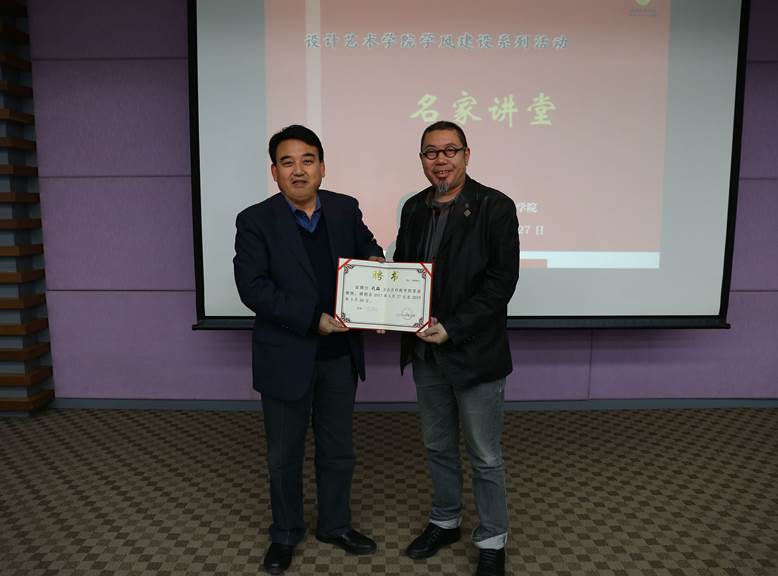 动员大会后,学院启动学风建设系列活动之“名家讲堂”,邀请客座教授孔森以“东方语境之善意设计”为题给师生们带来了一场精彩的学术讲座。他结合自己的设计作品和“墨界”、“空无”两场展览,跟大家分享了设计思维的创新与变革,强调了设计作品中对时代精神的解读和传统文化的致敬,倡导大家要将人文情怀、历史情怀融入设计作品中,在创作的过程寻找设计的本源,感受文化的自信,寻求人、社会、生存、发展与设计间的动态平衡,把设计变成有温度、有态度的东西。