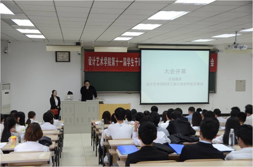 王旭致大会开幕词,向大会的召开表示热烈的祝贺,充分肯定了设计艺术学院团学组织在过去一年的工作中取得的成绩,对一年来团学组织学生骨干的辛勤付出表示感谢。并寄语新一届团学组织不断加强自身建设,努力提高素质修养,为营造优良的学风、院风贡献力量。