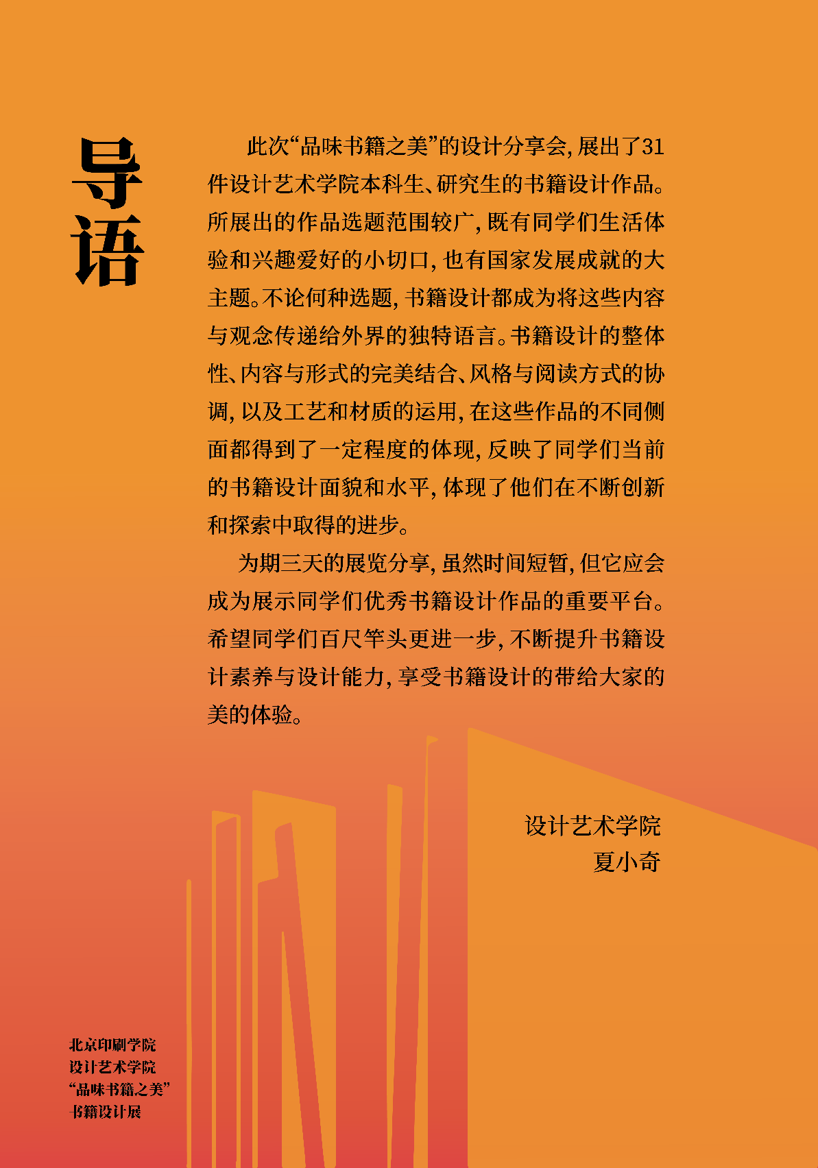 书香润泽校园,阅读丰富人生。正值学校首届大学生读书节,设计艺术学院举办品味书籍之美——书籍设计作品展、书籍设计分享会,立足专业特色,发挥学科优势,浸润书香气质,引领阅读风尚。