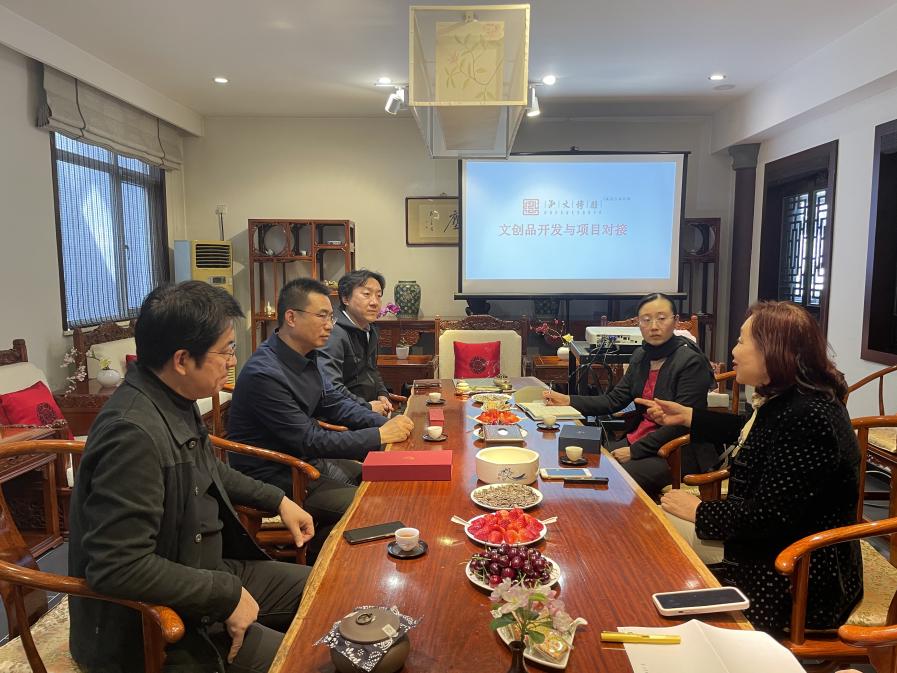 4月15日,学校党委常委、组织部(统战部)部长刘尊忠、设计艺术学院党委书记史民峰、院长张晓东、副书记王蕊、学工组长王馨悦及青年教师张晨应邀参观走访泓文博雅文化创意产业基地,并与泓文博雅艺术馆馆长潘海英、泓文博雅副总经理程先路就校企有机联动、人才供需有效对接等方面问题展开深入交流。