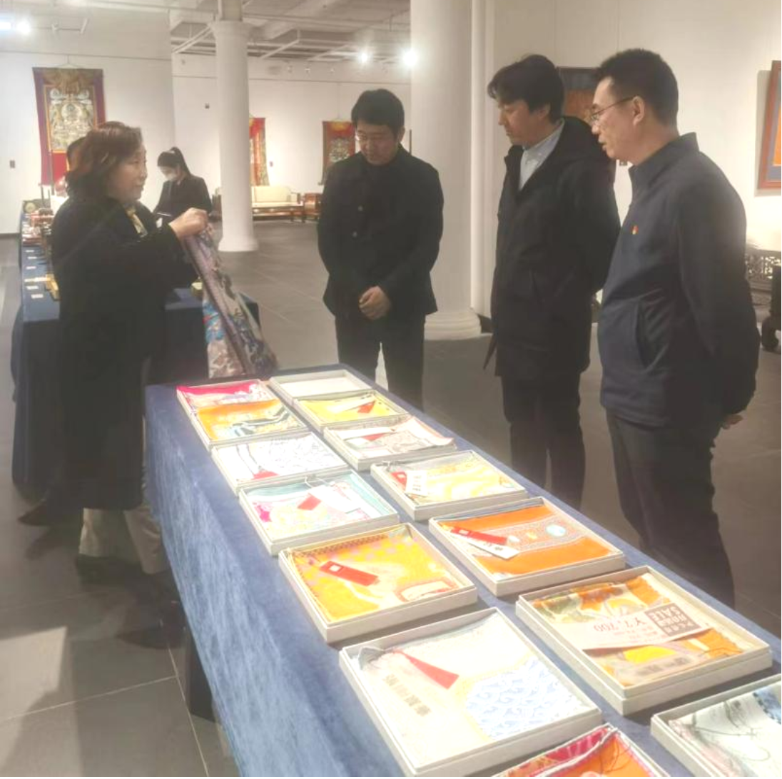 座谈会后,相继参观了“泓文博雅文化创意产业基地红木家居文化展”“非物质文化遗产——唐卡艺术展”及“原创手绘丝巾艺术展”,并就观展体验进行了深入的交流与探讨。