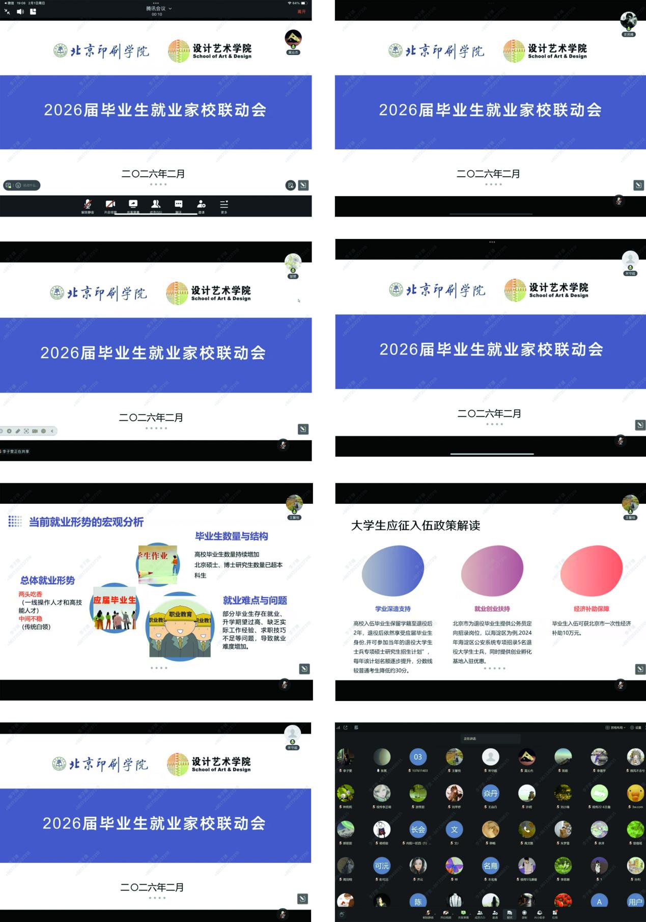 2月1日,设计艺术学院召开2026届毕业生就业家校联动线上会议。学院党委书记史民峰、副院长莫沁杰,学院就业辅导员王馨悦、邹赟,各系部主任及26届本科和研究生家长参加。会议由学院党委副书记宋守超主持。