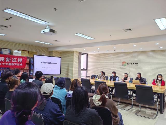 3月21日下午,为保障毕业生顺利就业及解决学生们征兵入伍相关问题,设计艺术学院召开了2023届毕业生就业、征兵政策宣讲会。党委副书记王蕊、学生处就业中心张琦莹、武装部苏比、设艺就业工作辅导员王馨悦、19级年级主任曾琤以及2023届全体毕业生参会。此次宣讲会线上线上同时进行。