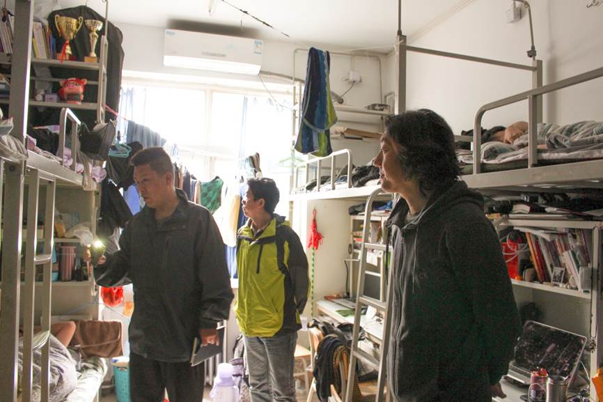联合检查组按照两院共同制定的宿舍检查制度,首先检查了位于4、5号楼的15级学生宿舍。联合检查组针对宿舍安全、宿舍卫生进行了检查,过程中,教师与学生针对思想认识,学习困惑,生活中的困难进行了询问和交谈。联合检查组检查15级混合宿舍后,设艺检查组全面细致的检查了16级、17级学生宿舍,对发现的问题要求学生当场进行整改。
