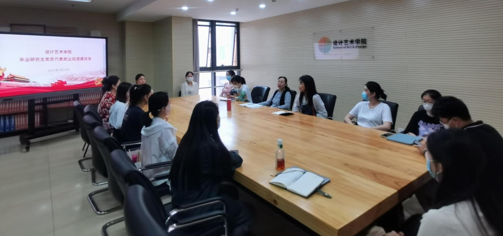 2023年5月16日,设计艺术学院在学院会议室召开了研究生毕业生党员就业促进座谈会,2020级研究生党支部16位毕业党员现场参加了本次座谈会,30名同学通过腾讯会议线上参会。党委副书记王蕊,负责学生党建辅导员曾琤,博士辅导员杨默涵参加了座谈会。