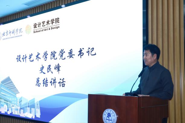 史民峰感谢学校党委对设计艺术学院学生工作的大力支持,介绍了学院2024年度学生资助工作、资助育人实践活动开展情况,号召设艺青年响应总书记号召,用专业知识执手中画笔画感恩故事,承传统美德立北印讲台话感恩真情。