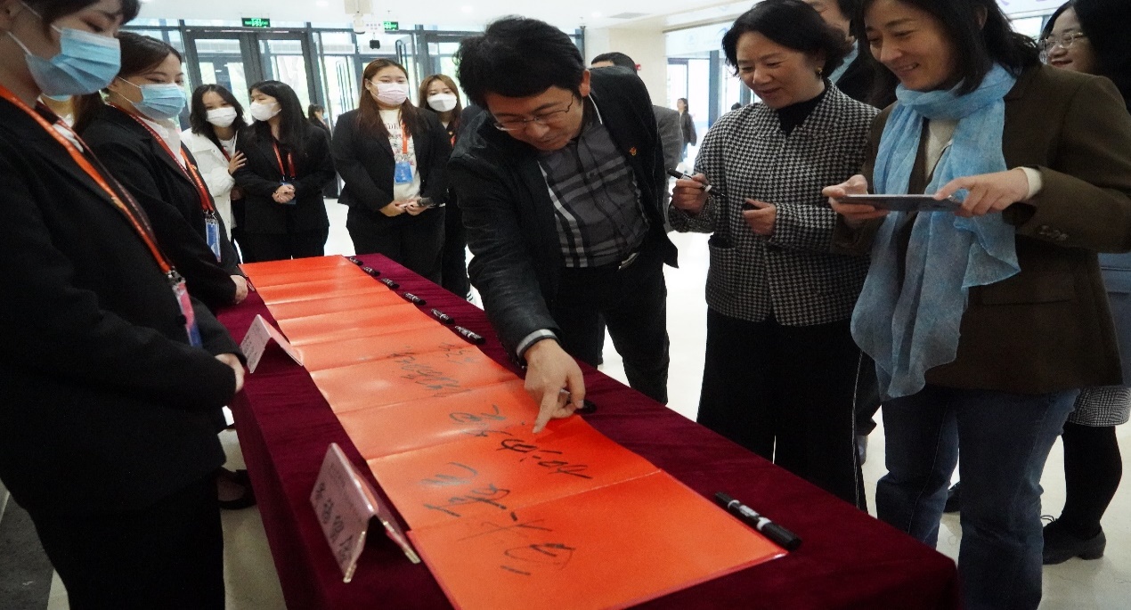 最后,由设计艺术学院党委书记史民峰老师宣布大赛开幕,参加此次百米长卷主题绘画大赛的领导们及老师们为活动写下寄语留念,随后共同观看学生创作。