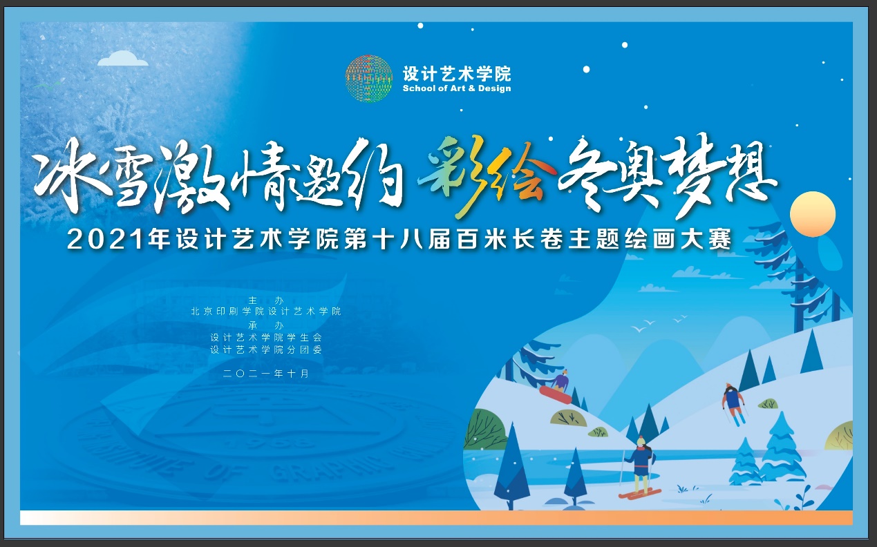 在北京2022冬奥会和冬残奥会即将开幕之际,设计艺术学院为进一步激发学生的创作灵感,丰富校园文化生活,弘扬爱国主义精神,培养团队合作精神,提高学生的实践能力,于2021年10月20日举办了第十八届“冰雪激情邀约,彩绘冬奥梦想”百米长卷主题绘画大赛活动。
