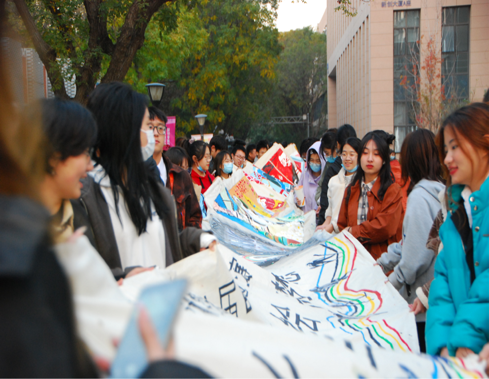 2021级新生代表李佳瞳在发言中说到:“通过参加百米长卷,让我明白了 “奥林匹克之父”顾拜丹爷爷说的那句话:“奥运会最重要的不是胜利,而是参与;正如生活中最重要的不是成功,而是奋斗;但最本质的事情并不是征服,而是奋斗拼搏。”如今的中国人民正在为实现伟大复兴的中国梦而不懈奋斗!百米长卷活动使同学们的创作思维迸溅,使每个同学在艺术创作中找到自己的价值,积极传递着顽强拼搏,无私奉献的奥运精神以及爱国主义情怀,这将成为我进校以来最难忘的记忆,也将成为我们此刻最深刻的铭记!”