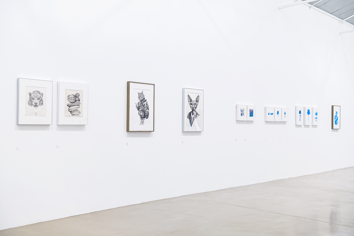 李化帅2011年毕业于北京印刷学院设计艺术学院,作品曾被西班牙巴塞罗那孔子学院基金会、西班牙MNAC国家艺术博物馆图书馆、树美术馆(北京)等机构和个人收藏。在此次展览中,剥离开题材和工具来看,李化帅对绘画的“严谨”尤为执着,他对物像心细如发的描写:像素颗粒感的动物肖像、“折枝花”式的蓝色花枝、使用规矩精密设计一般的构图与轮廓……尽显其严谨的“加法”。而其背后的放松,则是“格物致知”的单纯,一支笔、一个色、一招一式,画面所有的花絮甚至背景都放弃了,这是一种自信而又松弛的“减法”。这是三人绘画中“严谨”与“松弛”的矛盾并置,也是这次画展关于图像与视觉的“张力”,更是一种别具一格的传达。