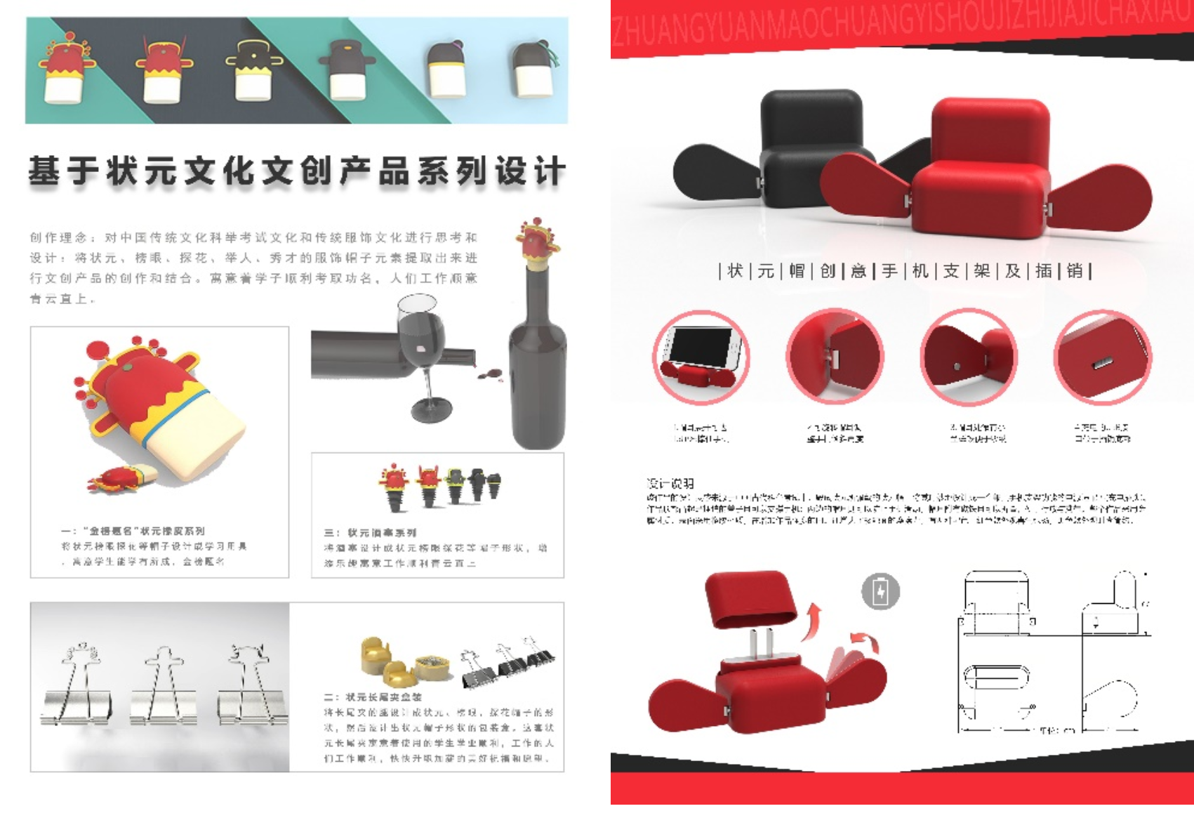 17级李滢钰带领的团队深入湖南,感受红色文化,他们深刻领悟到当代青年的历史重任。17级胡雨欣团队踏入绿水红桥的江苏淮安进一步调查当地旅游文化资源,调研汉文化景区,调研淮海战役塔园,怀念革命英雄烈士,结合地方特色和所学专业,做了基于状元文化文创产品系列设计。17级陈欣悦团队深入多彩云南,了解当地的风土人情,调研绮丽多姿的民族文化,并与云南民族大学工业设计系开展学习交流活动,多角度深入了解了云南的民族文化。