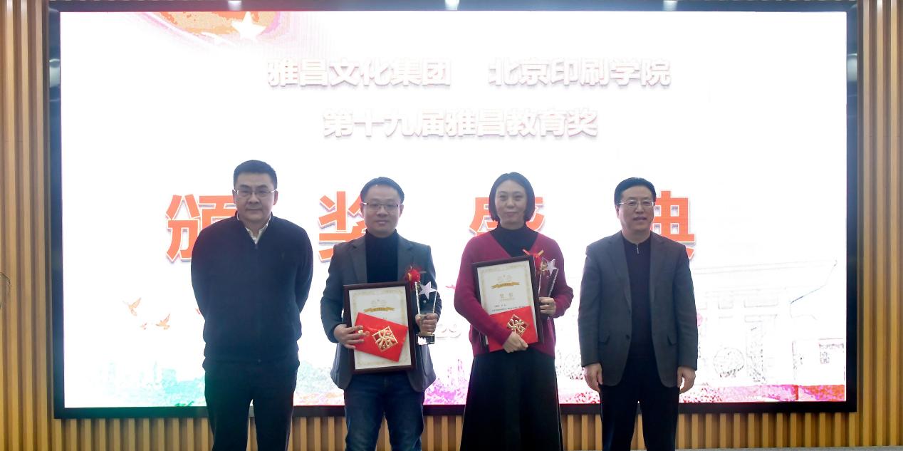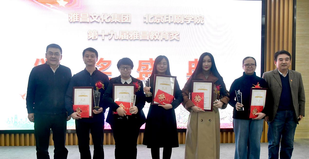 1999年10月,学校杰出校友、雅昌文化集团创始人万捷设立北京印刷学院“雅昌印刷教学奖”基金,旨在表彰在教学、科研等领域做出突出贡献和取得突破性成果的在职教工。2017年,雅昌文化集团在前期投入规模的基础上增加教育奖基金100万元。截至目前,学校获“雅昌教育奖”的教职工共173人次,其中13人获得“雅昌教育特别奖”。