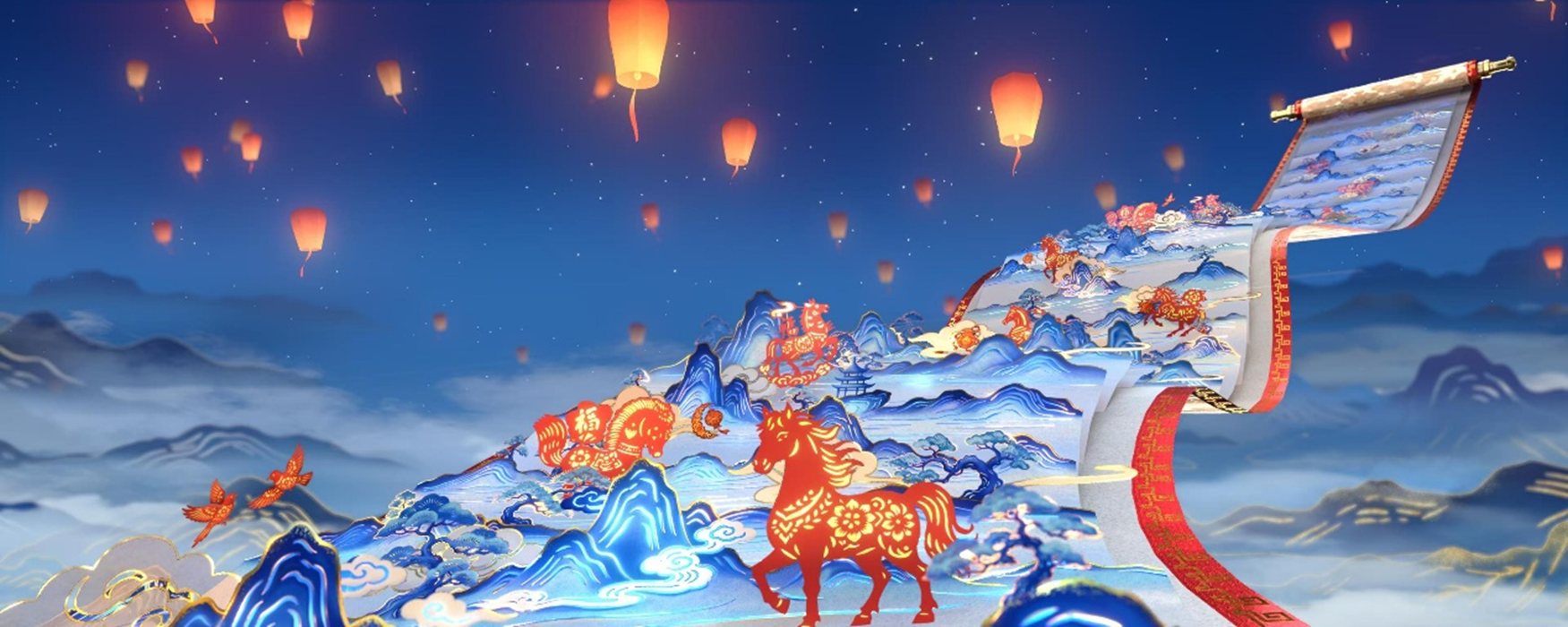 此外,视觉加入中国年味的典型元素“红灯笼”,灯笼由近及远穿行于窗前与楼宇之间,并由低至高缓缓升起,表达对新一年的美好祝愿。窗影的微幅晃动与星空背景相互呼应,构成可被感知的团圆叙事:人影对应烟火日常,星空指向时代远景。通过层级清晰的空间调度与光效组织,画面实现由铺陈到凝聚的情绪递进,形成“家国同心、灯火相连”的整体表达。