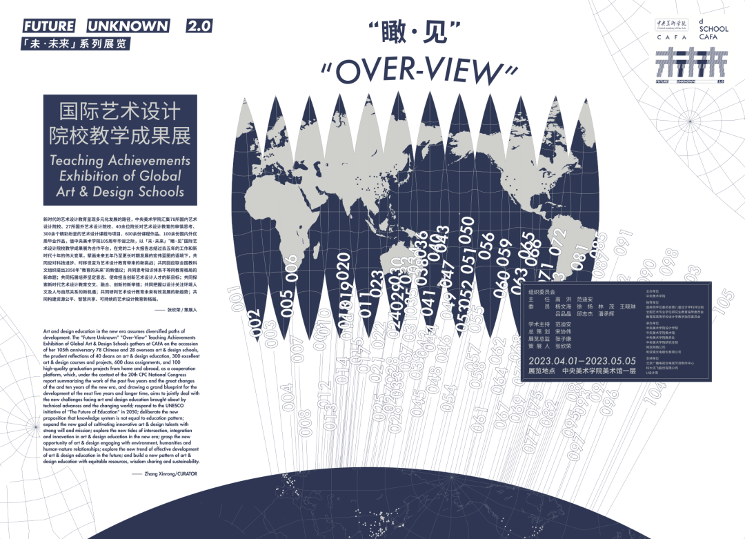「未·未来」“瞰·见”国际艺术设计院校教学成果展,在党的二十大报告总结过去五年的工作和新时代十年的伟大变革,擘画未来五年乃至更长时期发展的宏伟蓝图的语境下,共同应对科技进步、时移世变为艺术设计教育带来的新挑战;共同回应联合国教科文组织提出2050年“教育的未来”的新倡议;共同思考知识体系不等同教育格局的新命题;共同拓展培养坚定意志、使命担当创新艺术设计人才的新目标;共同探索新时代艺术设计教育交叉、融合、创新的新举措;共同把握以设计关注环境人文及人与自然关系的新机遇;共同研判艺术设计教育未来有效发展的新趋势;共同构建资源公平、智慧共享、可持续的艺术设计教育新格局。