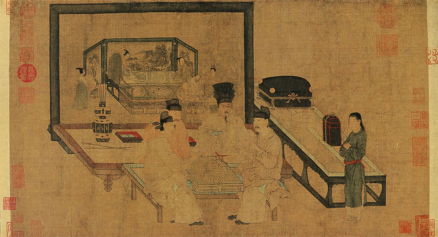 “石渠宝笈”展品之《重屏会棋图》 五代 周文矩