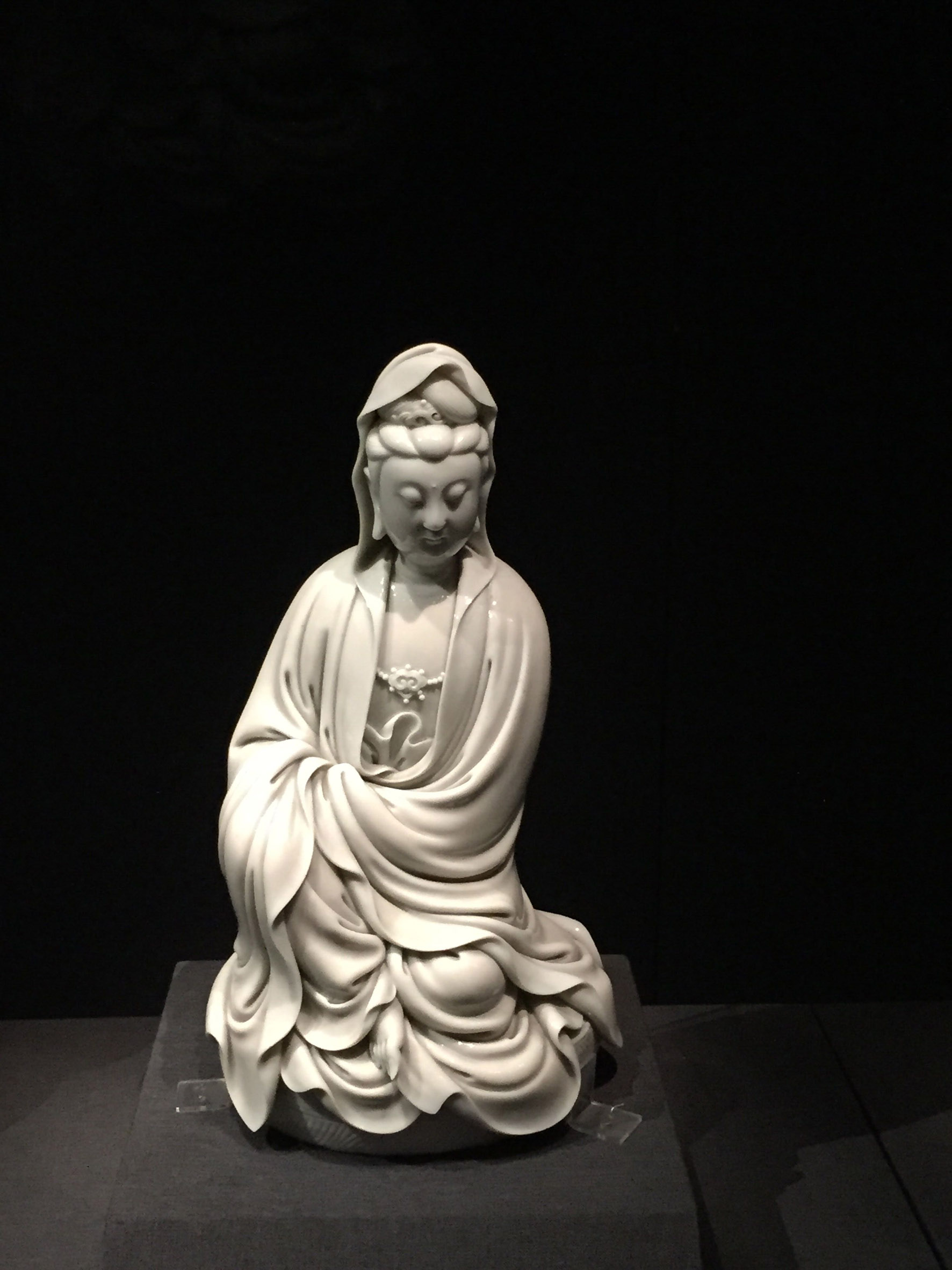 故宫文华殿古代陶瓷展品之明德化窑白釉观音坐像