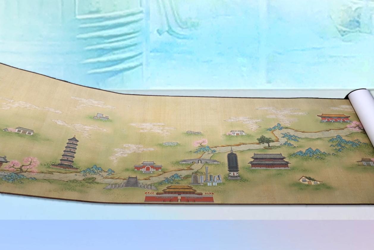 学生设计的《大运河流年之水》长卷,用数字绘画技术,用国画的用笔和色彩,绘制了京津冀航段的整体风貌,采用了中国传统装帧形式卷轴装,展示出京津冀航段运河的全貌和气势