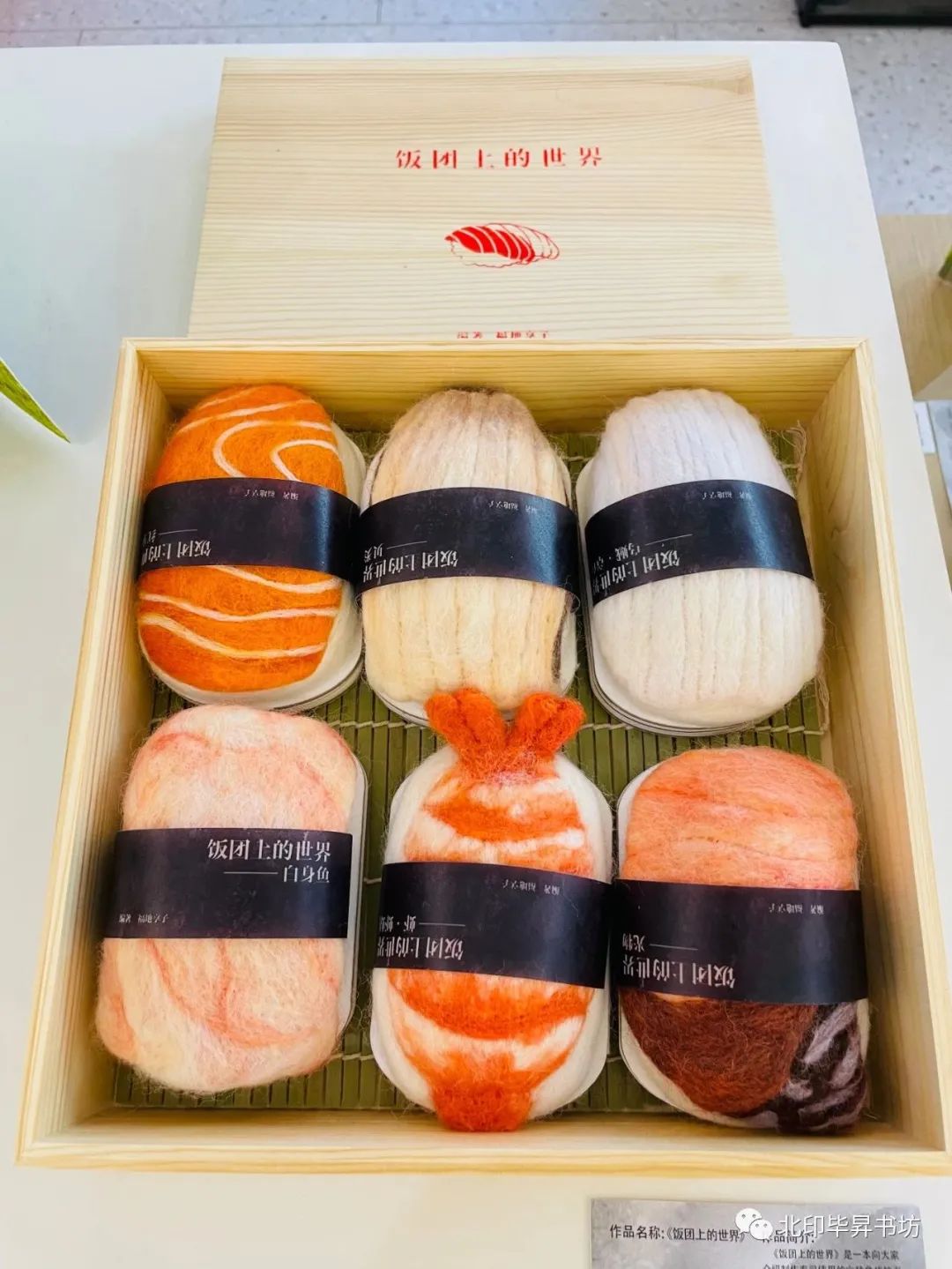 作品简介:《饭团上的世界》是一本向大家介绍制作寿司使用的六种鱼货的书籍。该书共分为六册,分别介绍红身鱼、白身鱼、光物、虾·虾蛄、乌贼·章鱼和贝类。书籍使用小开本和毛毡材料制作,使书籍更加拟态化,可让读者在阅读中轻松了解寿司的不同种类,在享受美味的同时也让生活更加有乐趣。